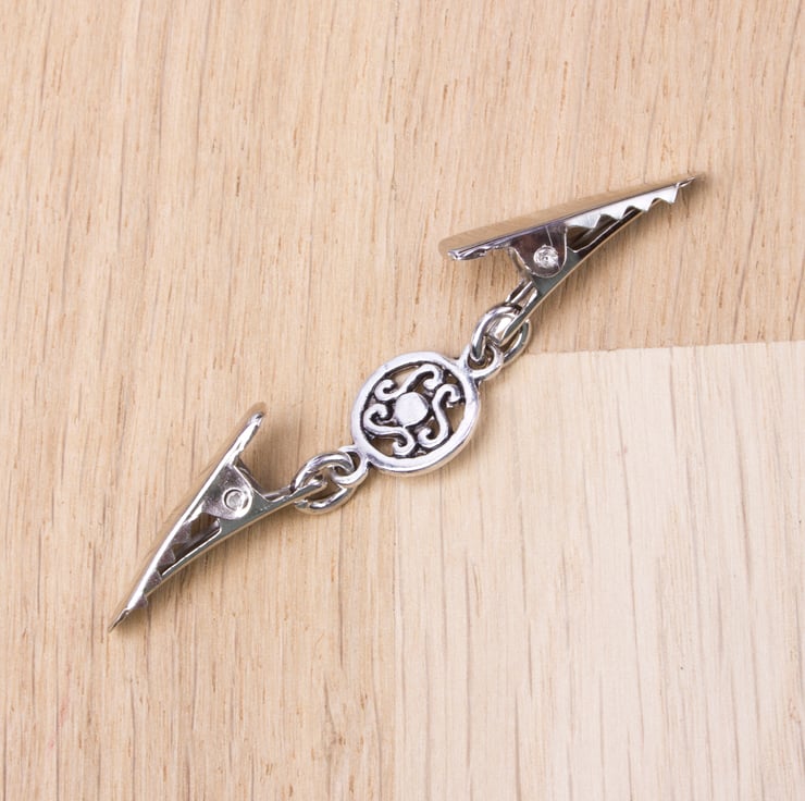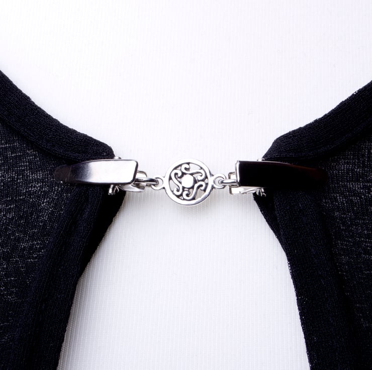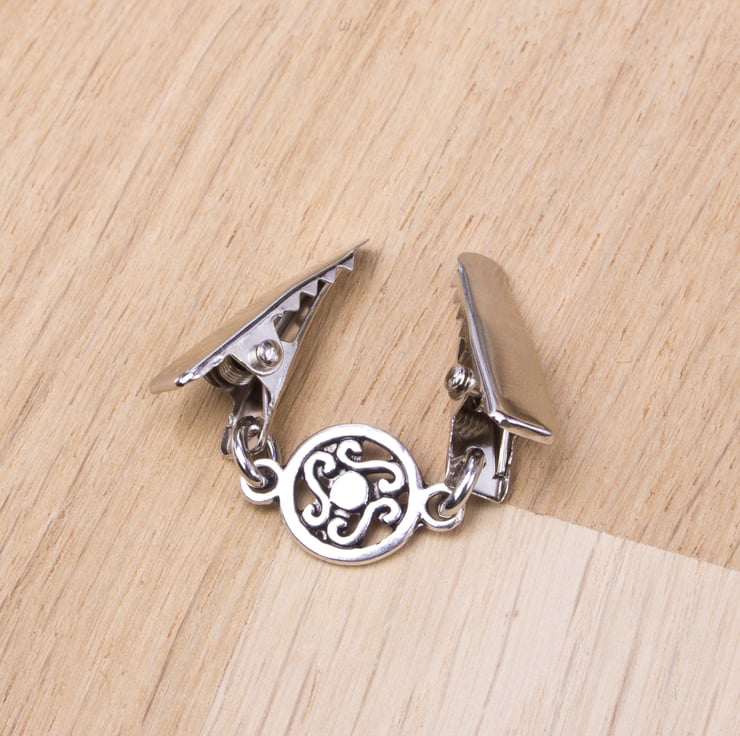 Such a useful little clip chain. It be used to hold together a buttonless cardigan, shawl or pashmina. You could even use it at the back of a top that is too big to make it more fitted, or as an ID badge holder.