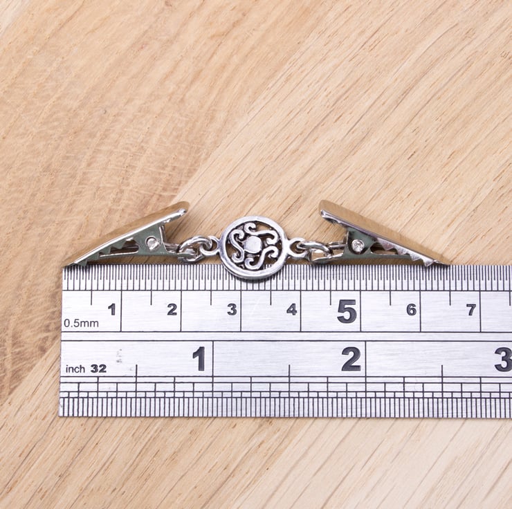 A Tibetan silver Celtic circle design link sits between silver-tone clips and is approximately 2.5 inches long (inc clips )
