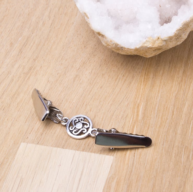 Versatile silver Celtic circle link contemporary sweater chain clips