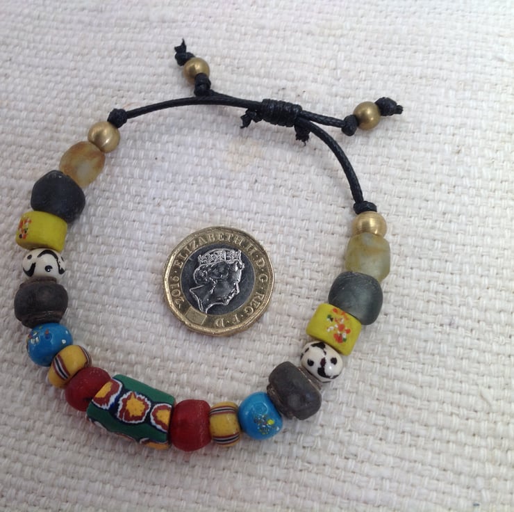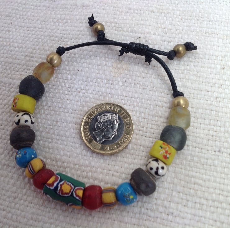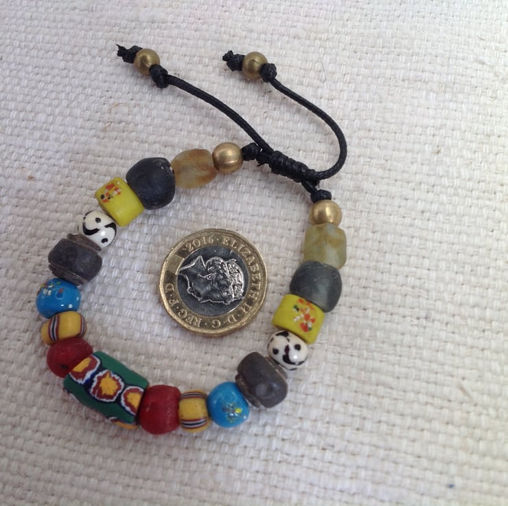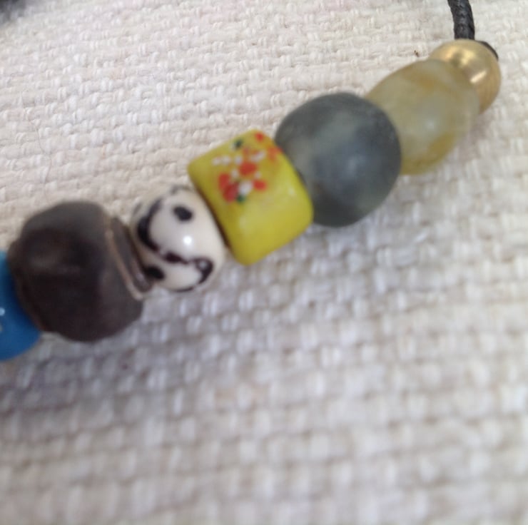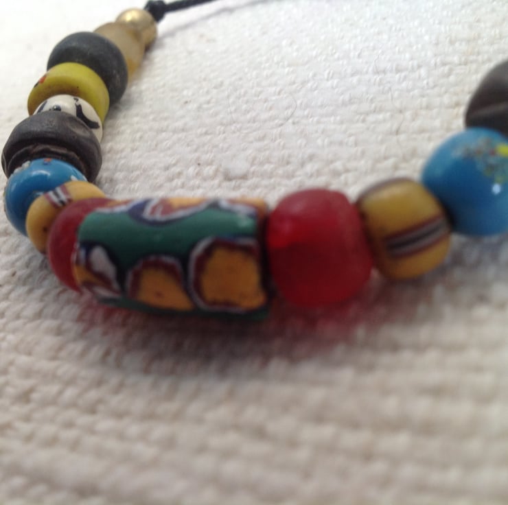 There are two other small trade beads and two modern clay beads from Mali alongside new African glass beads and some vintage ones from the Himalayas.