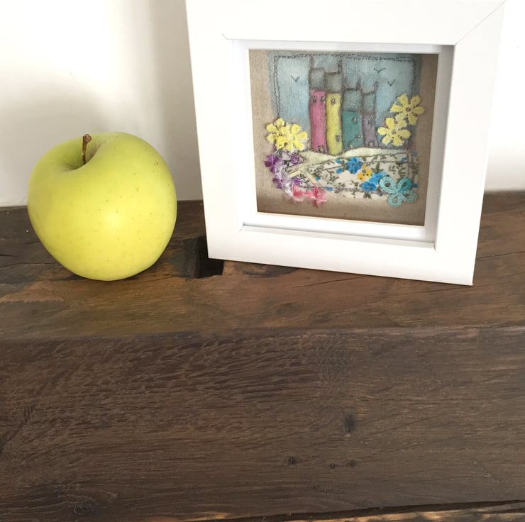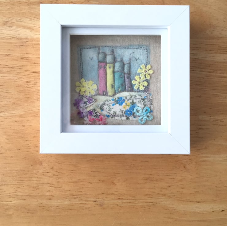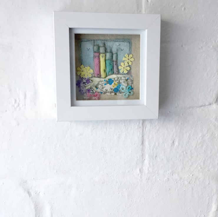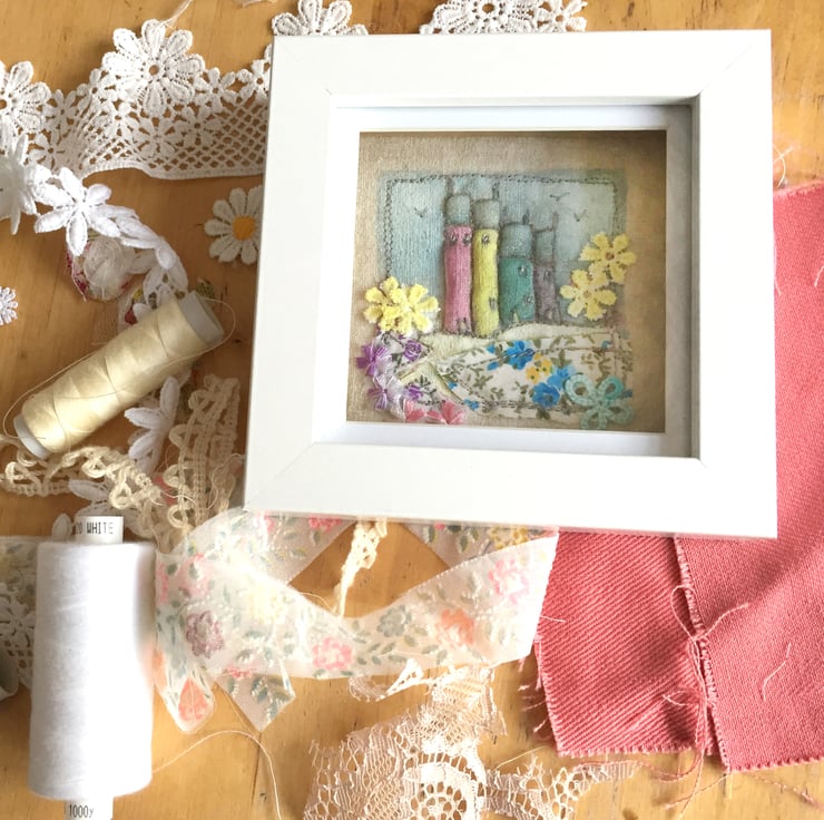 This 3D mixed-media fabric artwork is part stitched, printed, painted and sewn