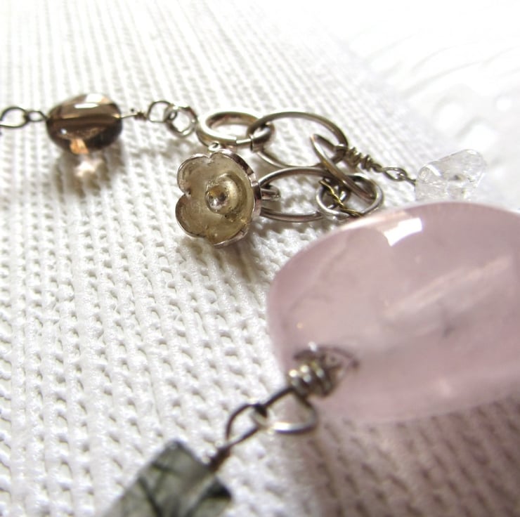With genuine rose quartz gesmtones nuggets.