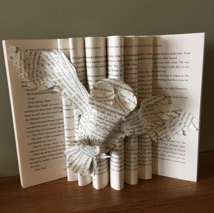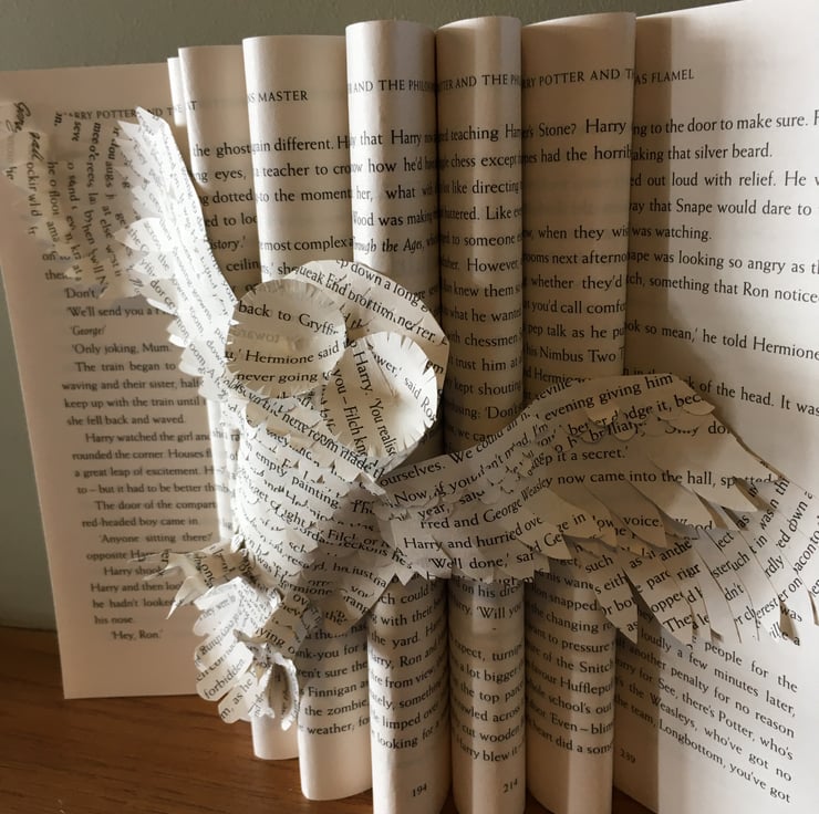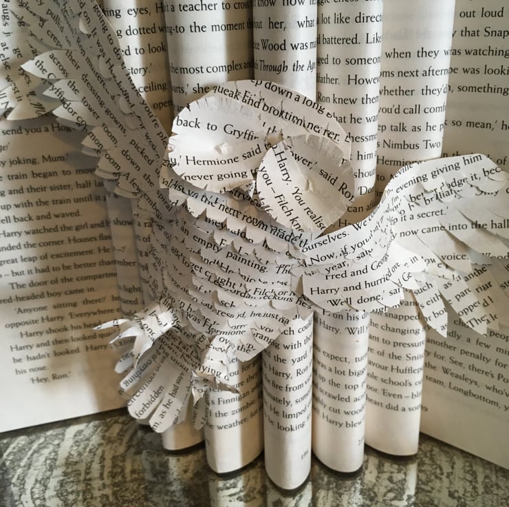 An owl flying out of the pages of ‘Harry Potter and The Philosopher’s Stone’. A beautiful handcrafted ornament for fans of the books young and old.