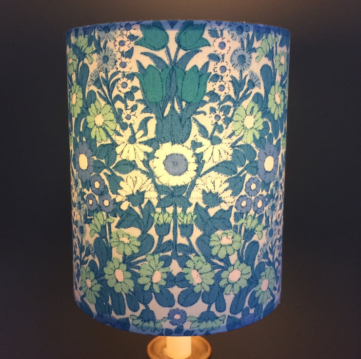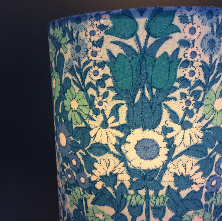 Fresh Sea Breeze Blue Floral Daisy Chain Pat Albeck vintage fabric Lampshade option - this fabric was designed by Pat Albeck for Jonelle. An uplifting focal point to any room,