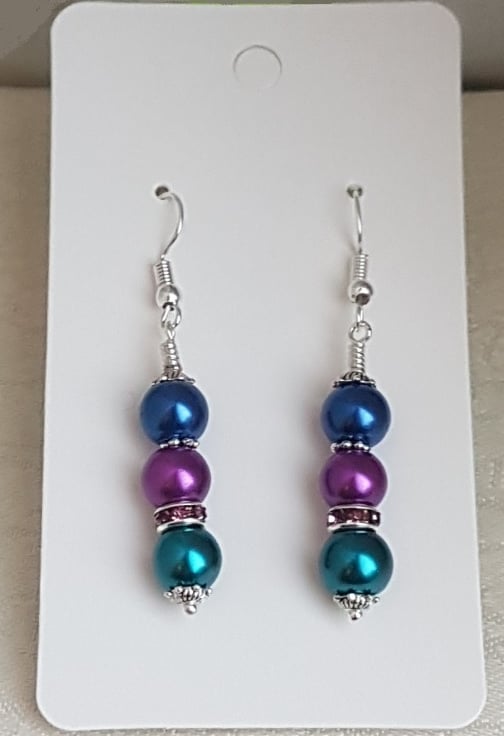 Blue, Amethyst Purple and Peacock (Turquoise) Glass Pearl Beads.