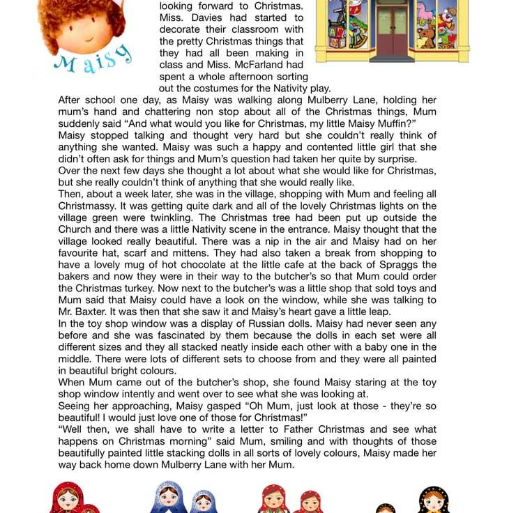 There are other children in Maisy’s class at school - Violet, Billy with his pet rabbit, Amber, Tilly, Rosie and her kittens, Amelia, Ruby, Marigold, Bobby with Max the dog, and the twins Oliver and Olivia, who have a puppy called Oscar. The dolls are all 26cm tall and baby Daisy is 16cm. Maisy and Mo love nothing more than having adventures with their friends. You can read about their adventures on my Facebook and Instagram pages - Maisy Muffin Rag Dolls and on my Mulberry Green Pinterest boards.
