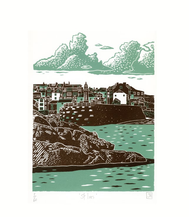 I love creating landscape prints, and I also love the seaside! I used to go to Cornwall as a kid, and recently started going there again with my family. St Ives is a really interesting place. It has a very artistic heritage, with the Tate Gallery and the Hepworth Museum, and it is also very beautiful!