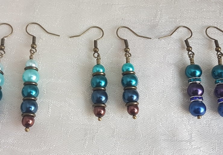 Aqua, Peacock, Midnight Blue and Bronze Glass Pearl Beads.