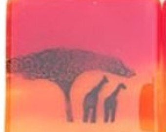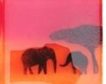 Fused Glass Elephant and Giraffe Savannah Sunset Coasters. Set of 2 Coasters.