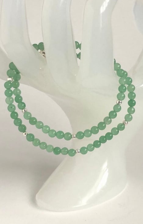 Wrap the bracelet twice around the wrist and fasten using the Sterling Silver clasp or wear as a beautiful delicate Green Aventurine gemstone choker necklace.