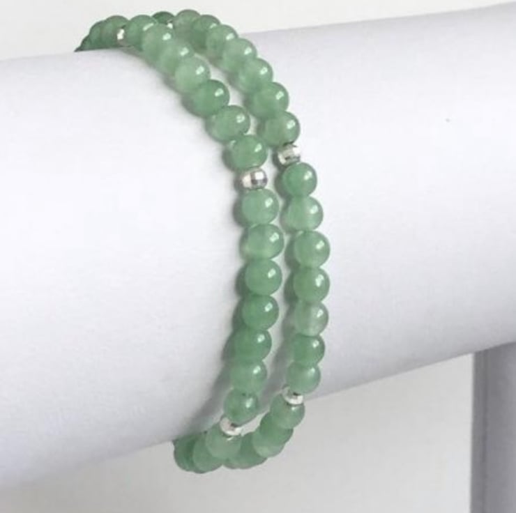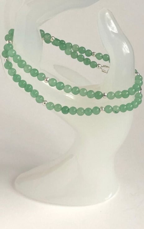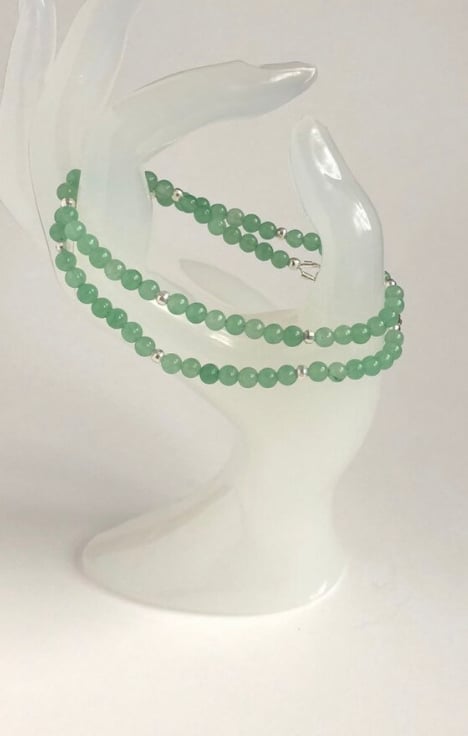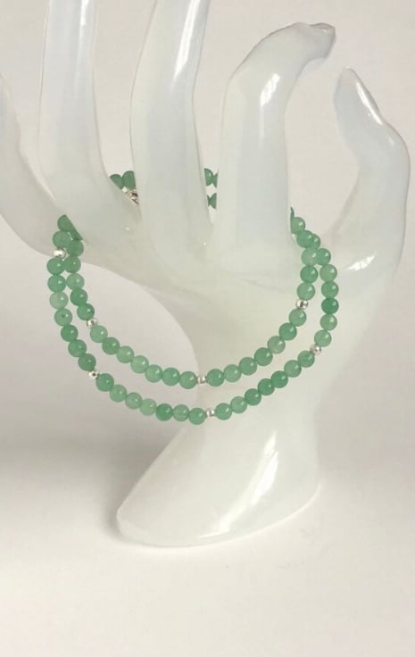 Wrap the bracelet twice around the wrist and fasten using the Sterling Silver clasp or wear as a beautiful delicate Green Aventurine gemstone choker necklace.
