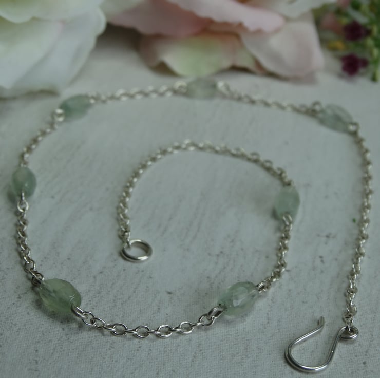 This is a lovely delicate necklace made using genuine prehnite gemstone beads, sterling silver wire and chain.