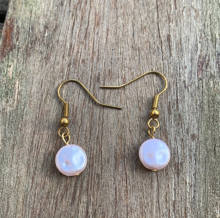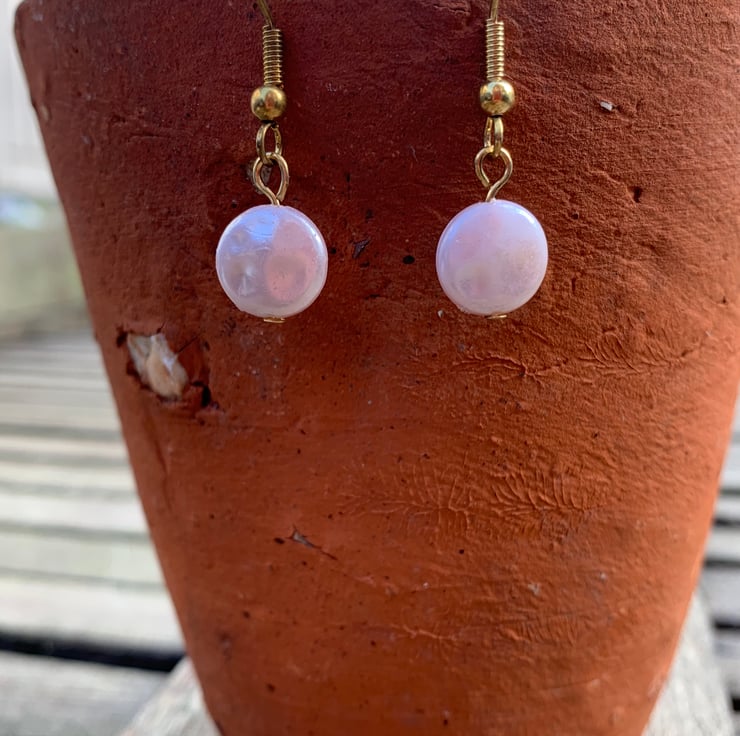 Cream pearl plastic beads on gold plated findings earrings.