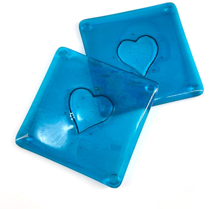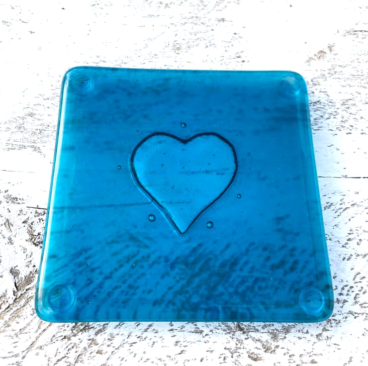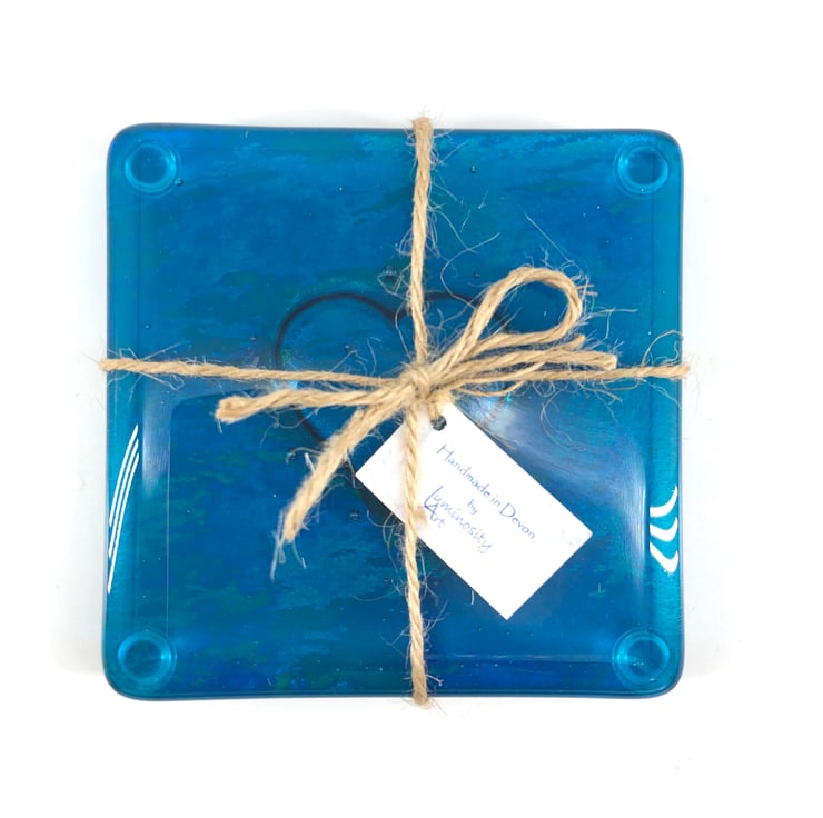 These gorgeous dark teal fused glass coasters have been made with iriidised glass which gives a lovely sheen as they catch the light.