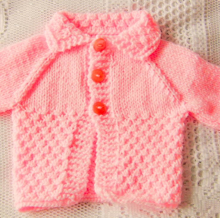 Baby Girl's Hand Knitted Pink Cardigan, Baby Cardigan, Baby Clothes, Baby Shower Gift, New Baby Gift