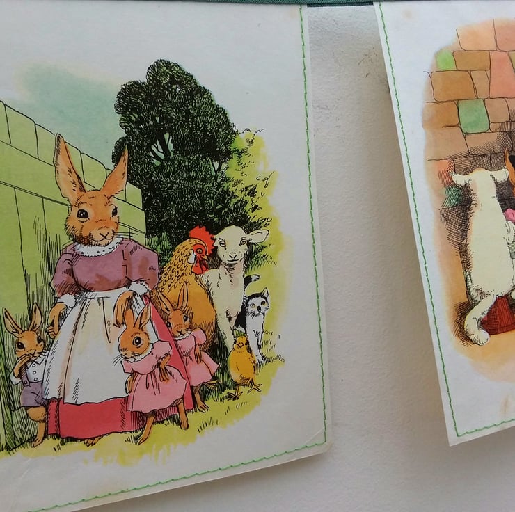 Listening to stories was a huge part of my childhood and the Blackberry Farm Books were always a favourite - especially when staying with my Grandmother. They are written by Jane Pilgrim and were first produced in the 1950s. The pictures are fabulous and bring back memories of a very different kind of childhood. By turning this much loved old book into bunting I have given a new life to some wonderful illustrations.