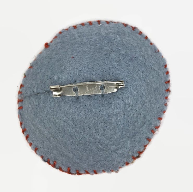 This floral brooch or corsage has been cut and stitched into shape from a piece of hand made multicoloured felt.