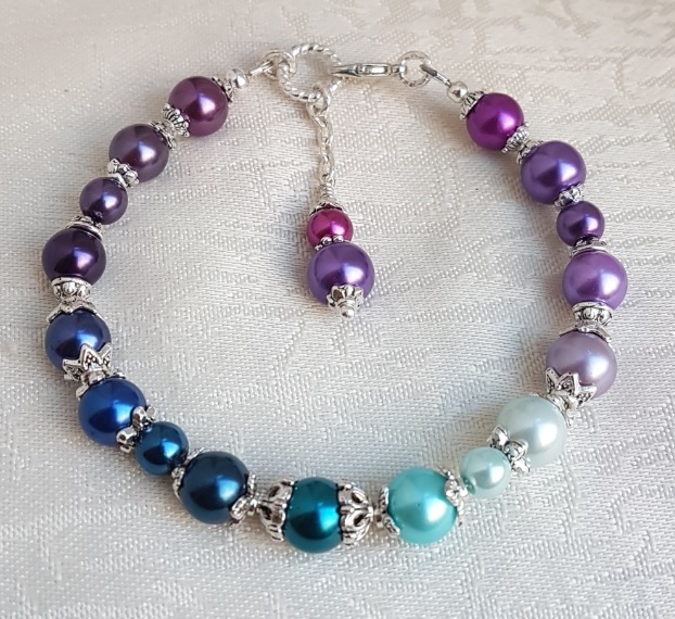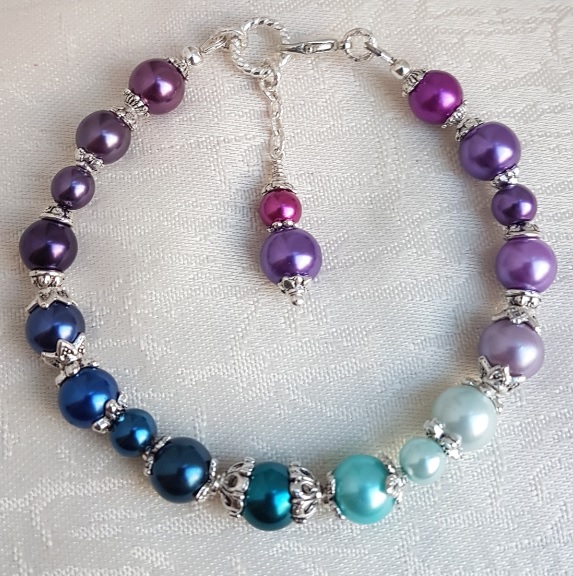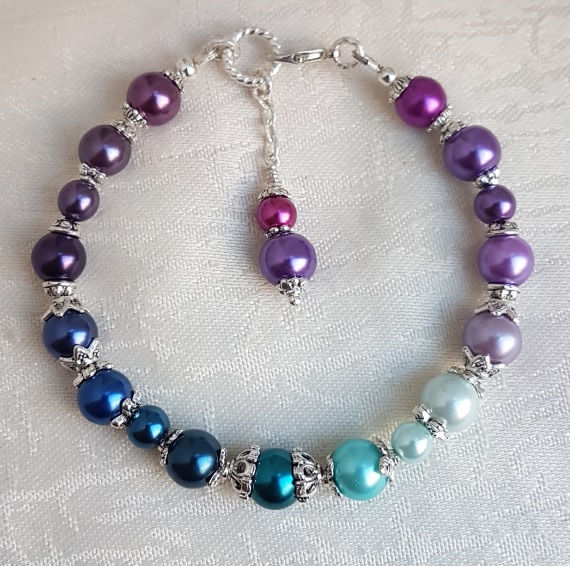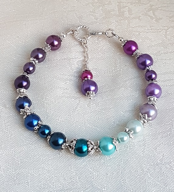 Gorgeous Spirit of the Peacock beaded bracelet. Great colours in fabulous Peacock tones. A really pretty bracelet and a unique piece of handmade jewellery. Gorgeous glass pearl beads and silver tones. A lovely gift to wear individually or to pair with the Spirit of the Peacock necklace or any of the Silver tone earrings (Each Sold Separately).