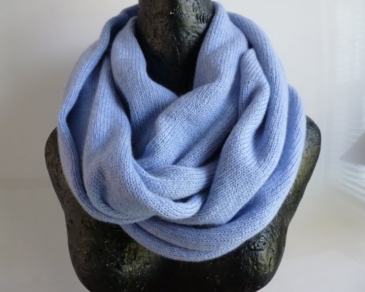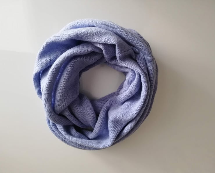 This women's infinity scarf has been knitted on a domestic knitting machine using the finest Italian merino lambswool (75%) and angora (25%) to produce the warmest, lightest and softest scarf. It can be wound around the neck twice (or not) and is soft and stylish but also extremely light and cosy.