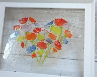 Fused Glass Heart of Flowers Framed Picture, Valentines Day, Mothers Day, Gift,