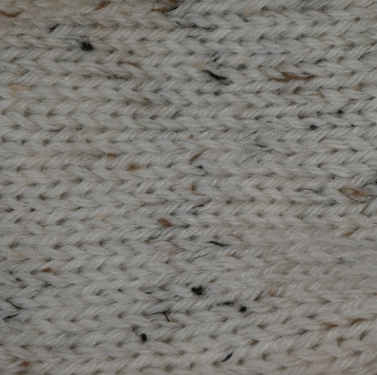 The scarf is double thickness as it is knit as a tube, and therefore has no seams. It measures 5" wide and 67" long.