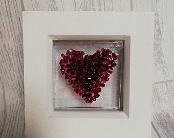 Fused Glass Textured Heart Framed.