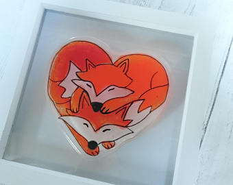 The Measurements are 23x23cm, These Cute Foxes must be in love just look at them. Comes in this white wooden frame.