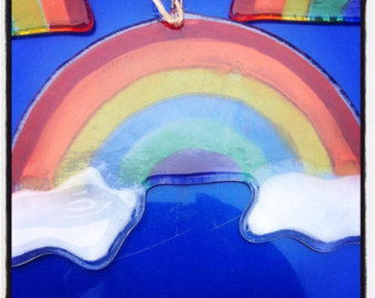 This Rainbow is 10x20cm. This is a great addition to your home or garden will be fine hung in garden.