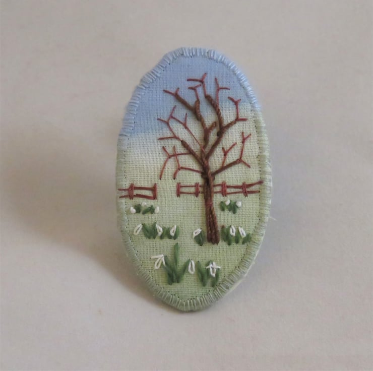 I love stitching miniature landscapes. This is the second brooch I have made with this sort of painted background.