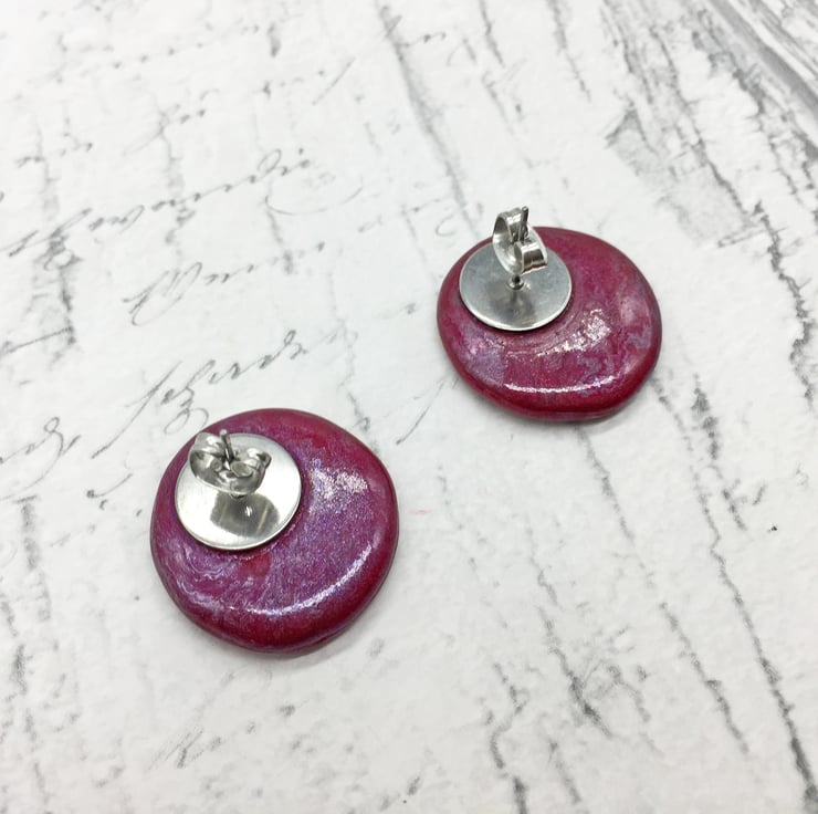 I've glued high quality hypoallergenic surgical steel studs to the rear of the earrings and added surgical steel scroll backs to hug them to your ear lobes! They measure approximately 2cm in diameter and a depth of approximately 0.7 cm.