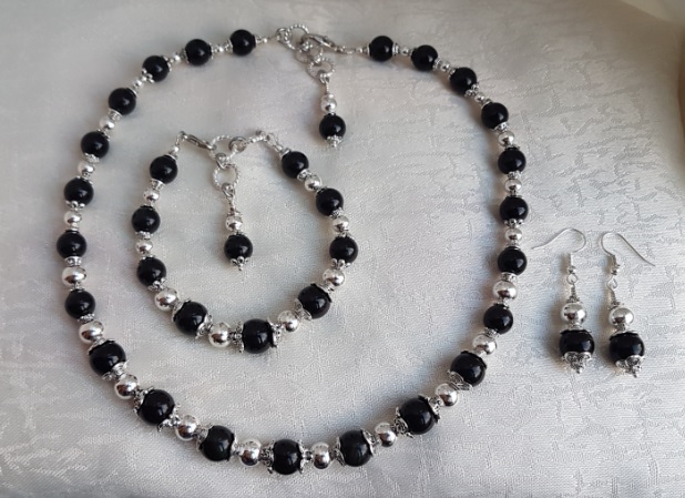 I love Black and Silver tones together, a beautiful contrast, simple and effective. The Black Obsidian beads and Silver plated beads used here just look stunning together. Obsidian is one of my favourite Gemstones, made of volcanic glass it is formed by lava rapidly cooling making this fabulous glass rock. A true gift from the Earth, made from fire and lava and transformed into beautiful stones for jewellery.
