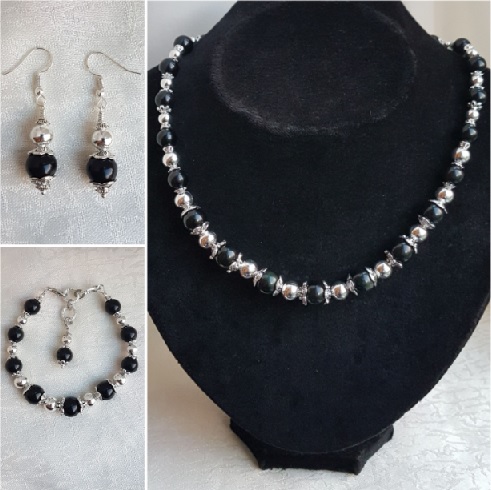 Beads are Black Obsidian and Silver plated.