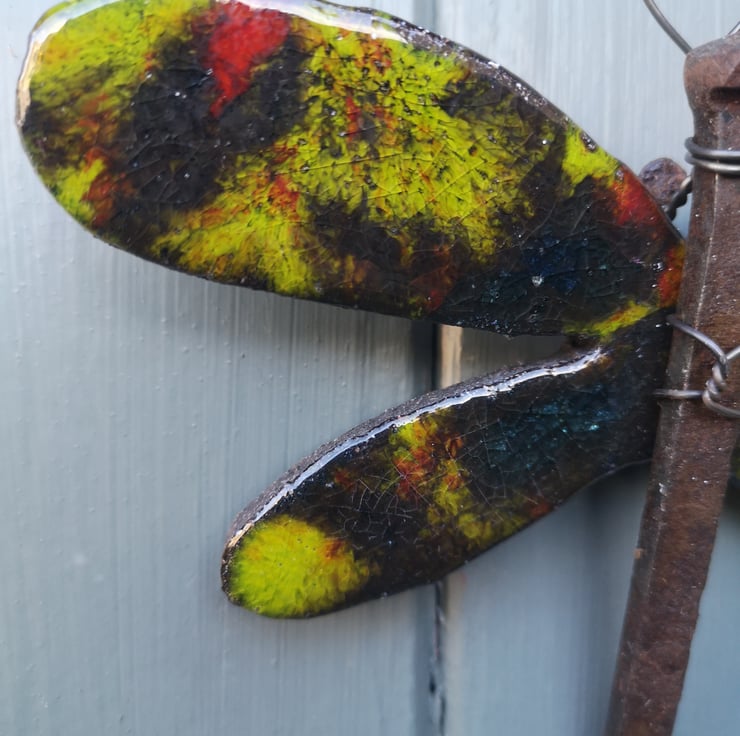 Ceramic Dragonfly, created with an upcycled rusty nail !
