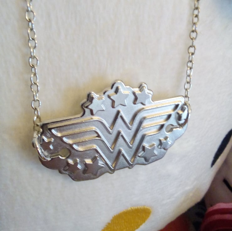 Find your inner wonder woman with this awesome pendant, made using an official DC metal charm which I've added to a silver plated chain measuring around 18 inches.