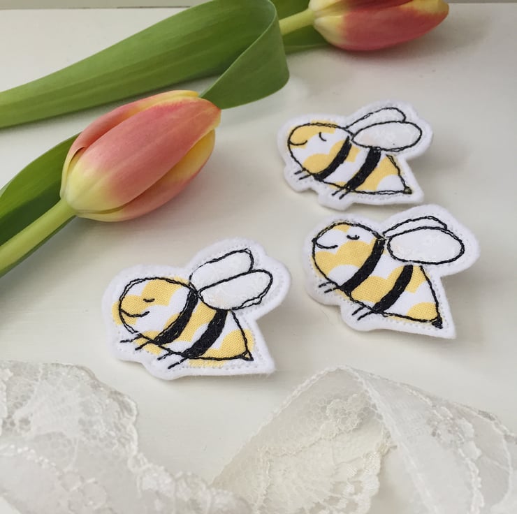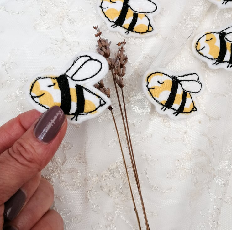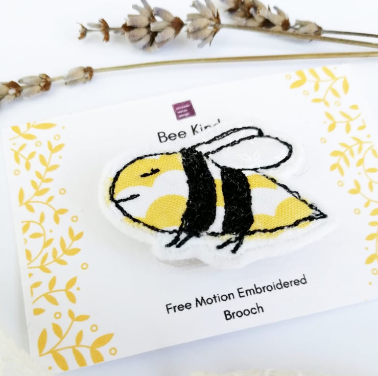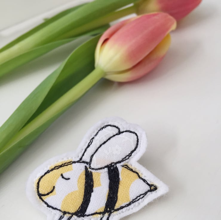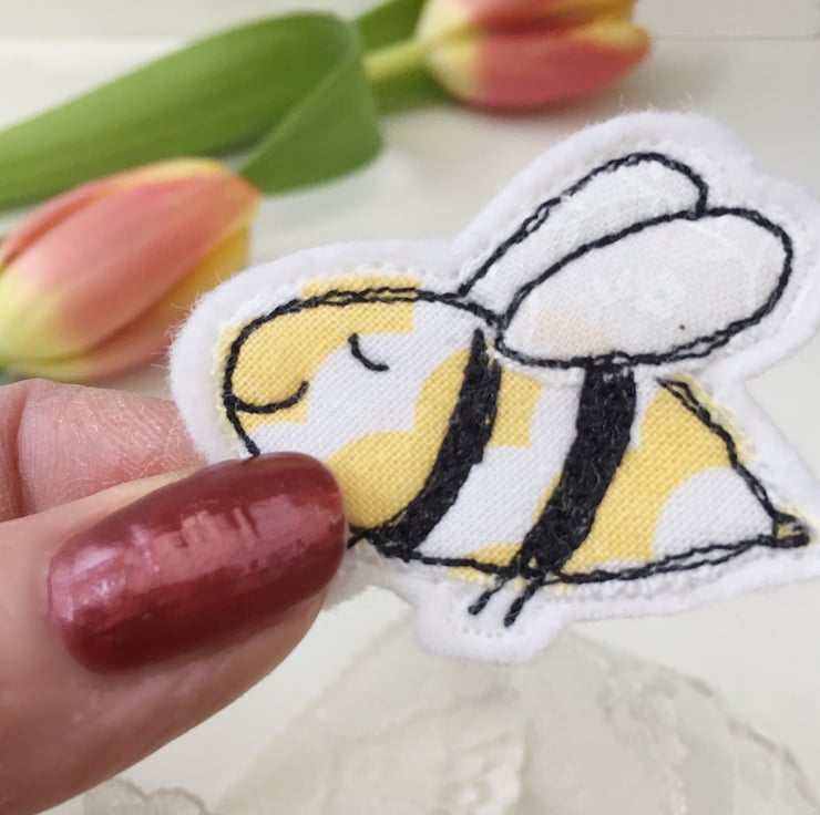 A sweet little Textile Bumble Bee, embroidered using a method Called Free Motion Machine Embroidery and Appliqué.