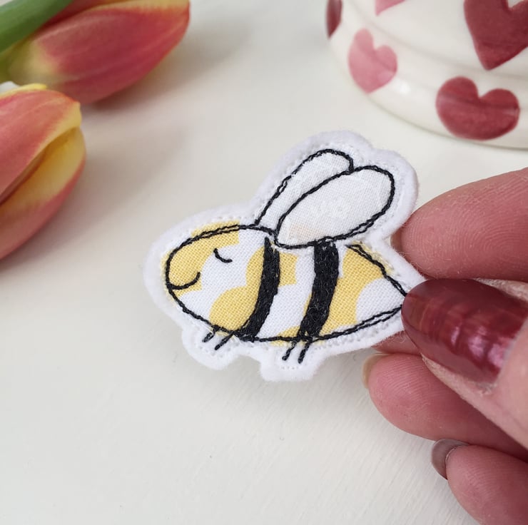 Brooch is made from cotton fabrics, Appliquéd onto Felt backing, with a brooch pin to enable you to fix to clothing, bags or accessories to add details of interest.