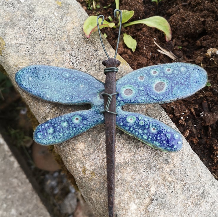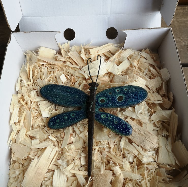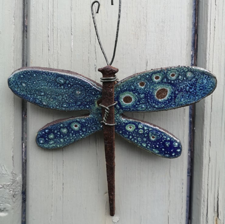 Ceramic Dragonfly, created with an upcycled rusty nail !
