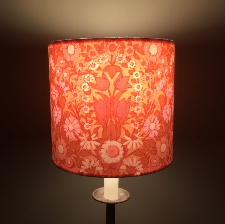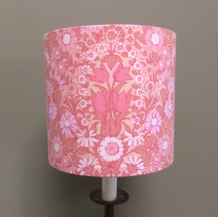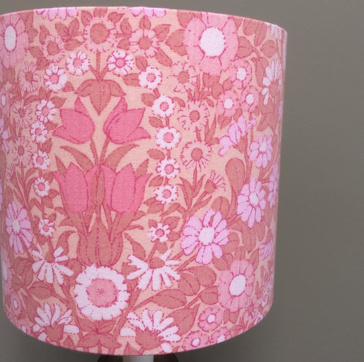 Sweet Sugar Pink Floral Daisy Chain Pat Albeck vintage fabric Lampshade option - this delicious fabric was designed by Pat Albeck for Jonelle. A pretty focal point to any room.