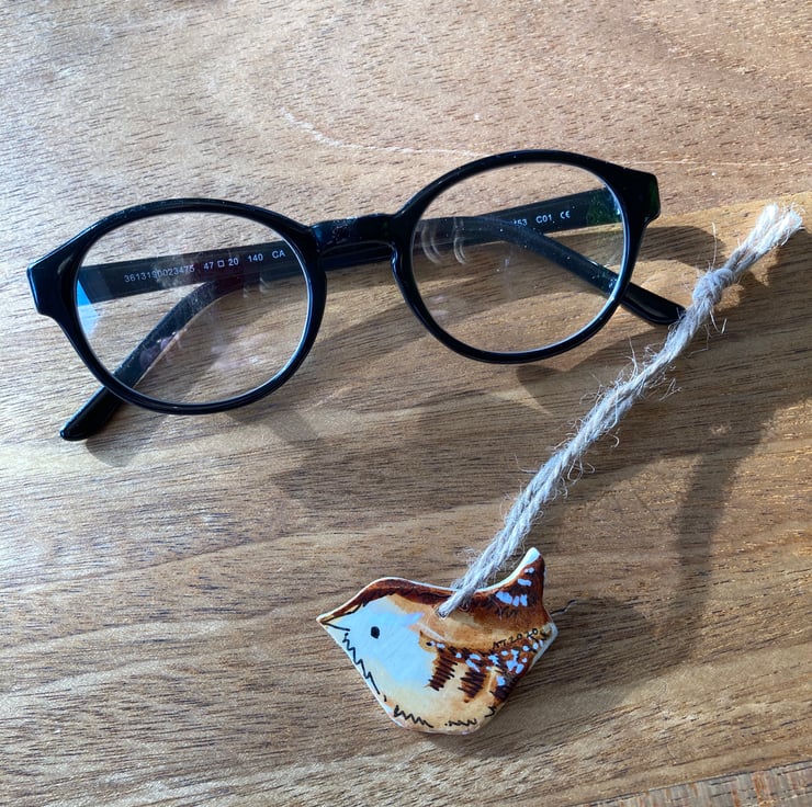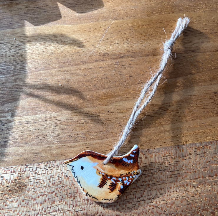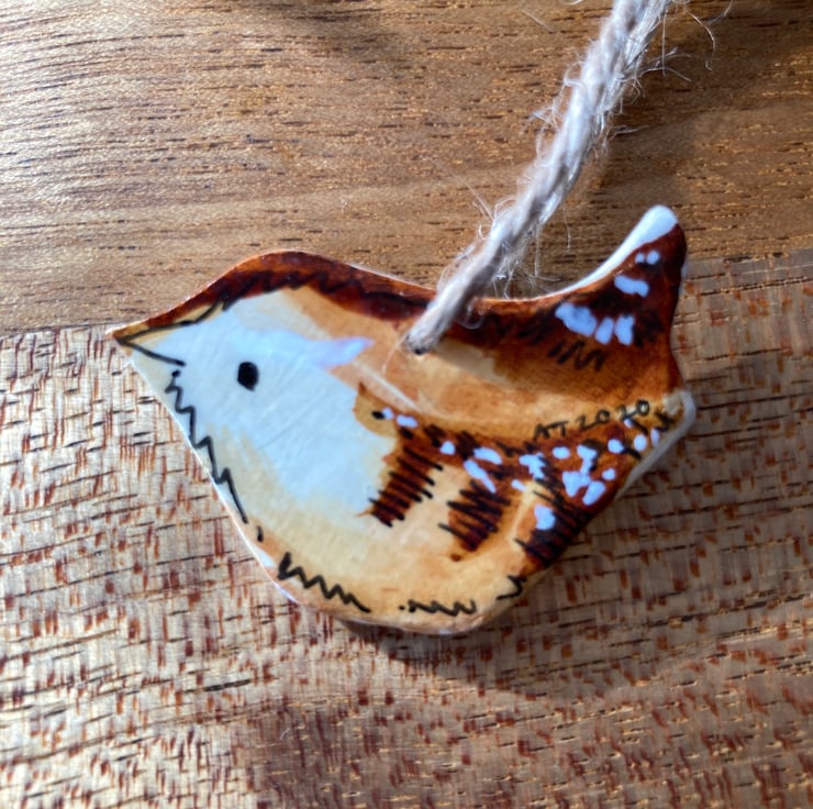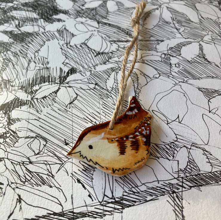 Little wooden hanging decoration. I love every part of the process from cutting out to the final coat of varnish. Although my favourite part is painting with acrylic inks and adding the detail to try and give each little bird it's own character.