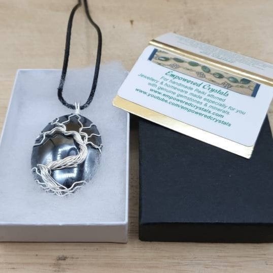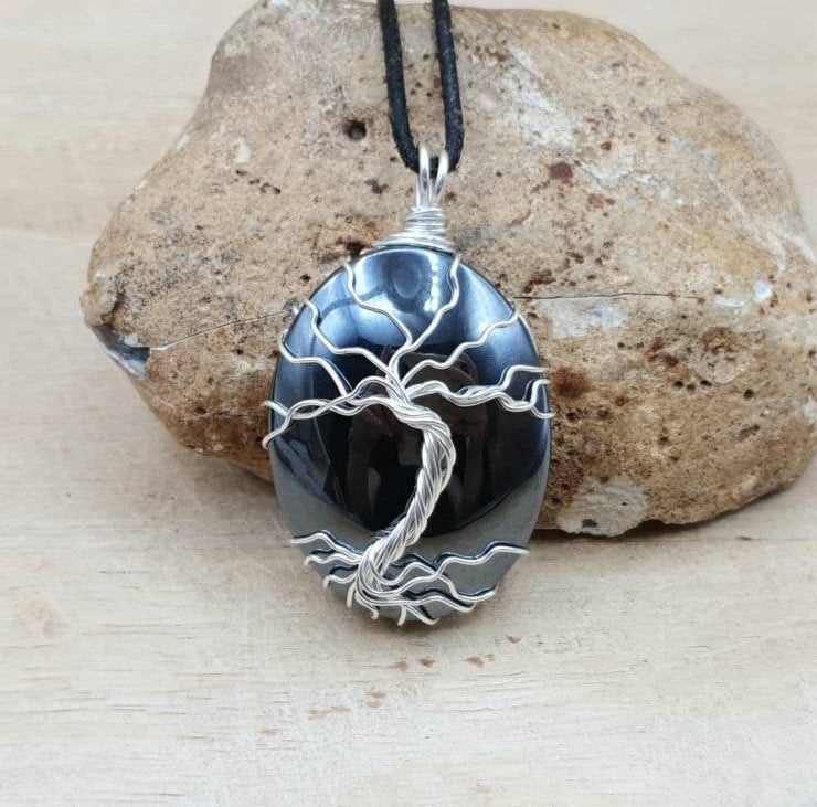 This is a Hematite pendant necklace which I have wire wrapped with silver filled wire in a tree of life design. MADE TO ORDER