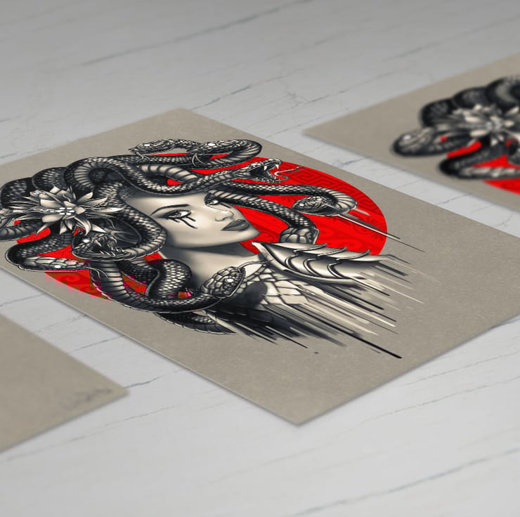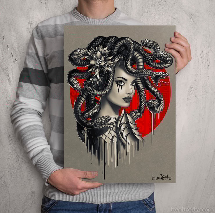 Medusa from Geek Myth. Illustration print by Ben Krefta - A professional artist best known for his 'How to Draw Manga' art books, which have sold close to 1 million copies globally. He specialises in comic, manga and tattoo inspired designs and art.