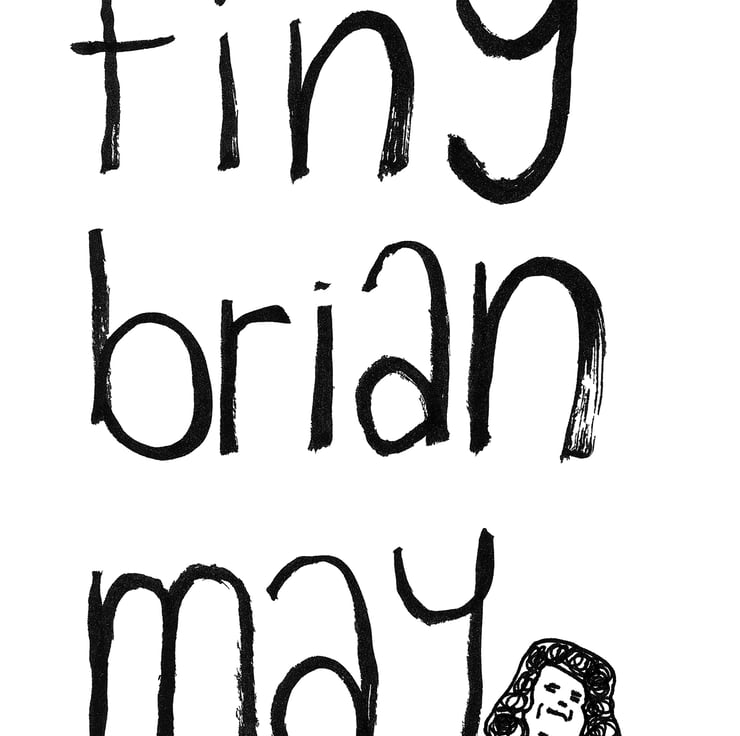 I decided to draw a tiny Brian May then write Tiny Brian May in the remaining space. That's the inspiration for this card.