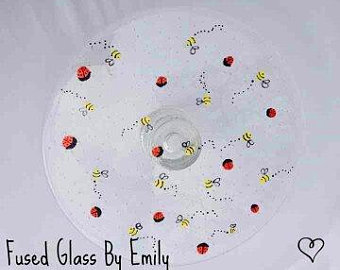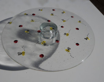 Fused Glass Bee & Ladybird Cakestand, Cake Plate, Centre Piece