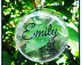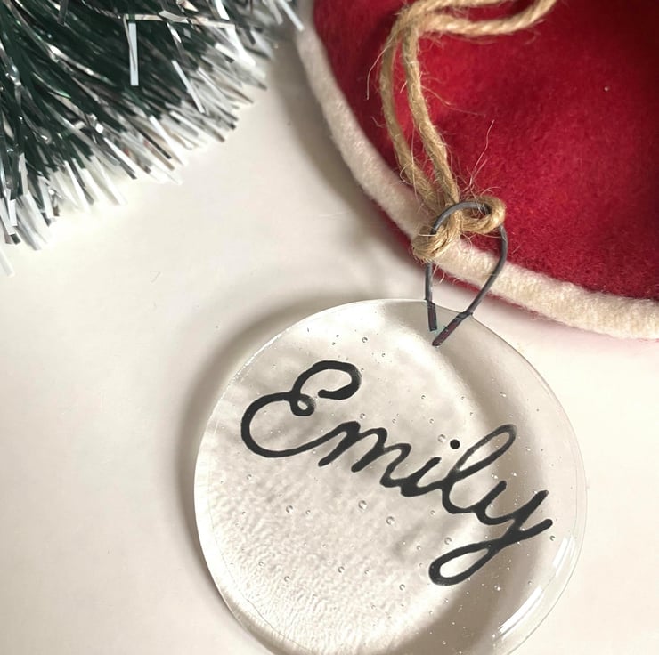 Personalised Glass Bauble approx 6.5cm. This is a perfect personalised item to hang on your Christmas tree or to just hang all year around on your tree. Please place order and comment with name on order.