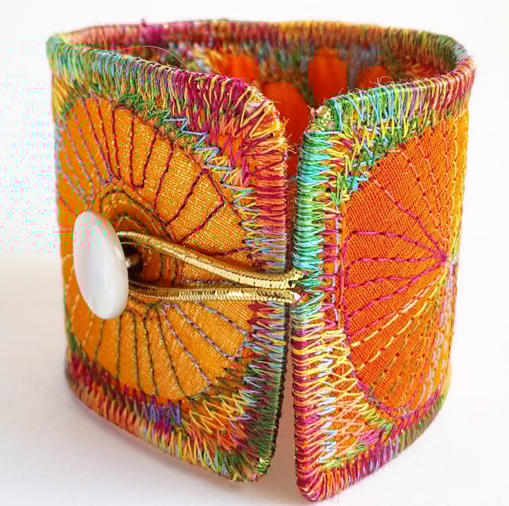 It has a beautiful button and an elasticated closure so it will stretch to fit a slightly larger wrist