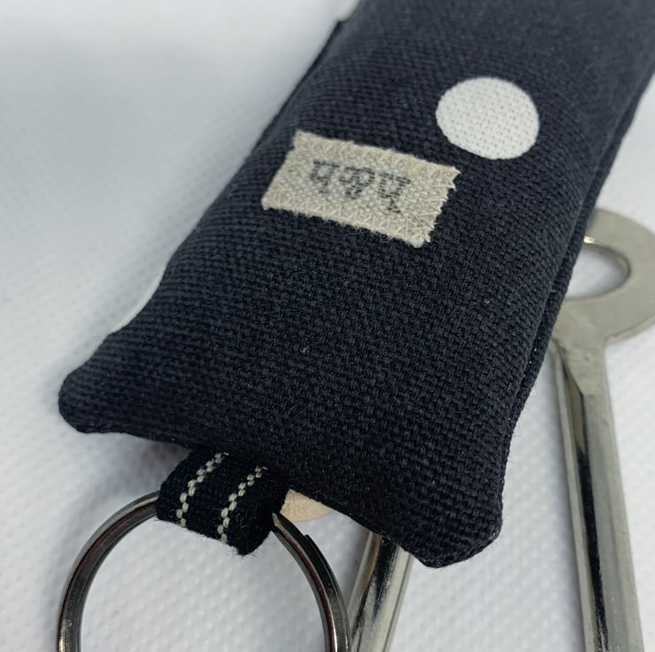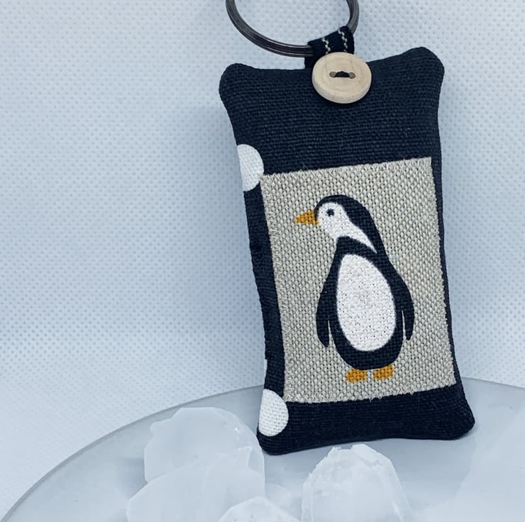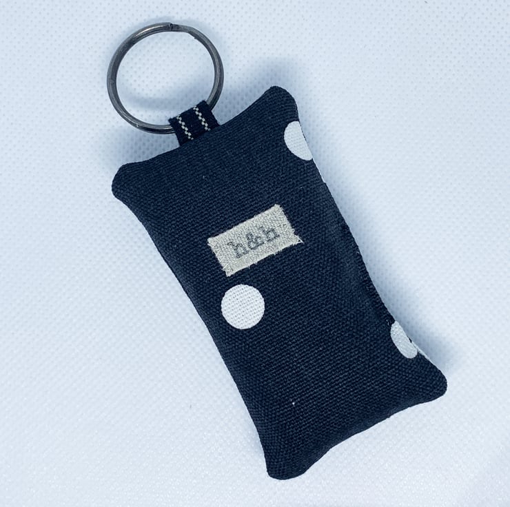 In black and white polka dot printed cotton with a charming penguin patch, your keys will be super easy to spot in the key pot, cupboard or drawer, the bottom of your handbag or wherever else you've left them. Also looks good on a cupboard or wardrobe key in its lock. And makes a thoughtful and original housewarming present or a fantastic bag charm.