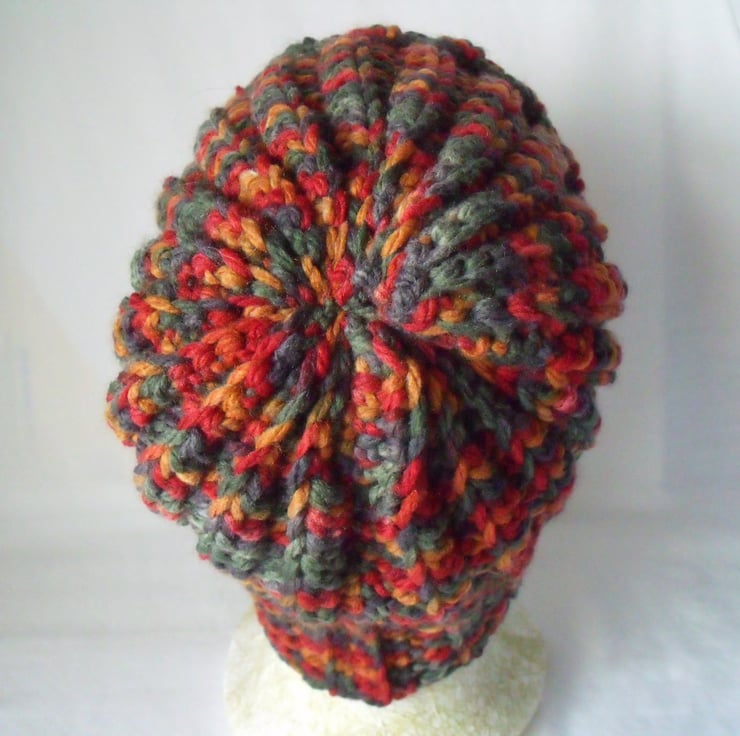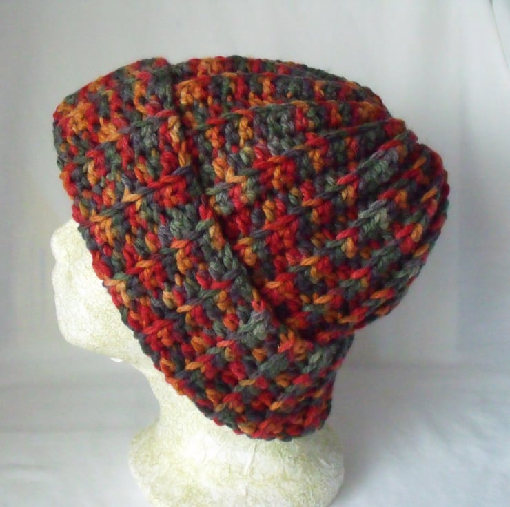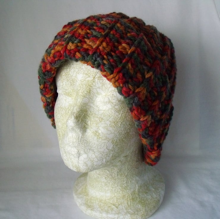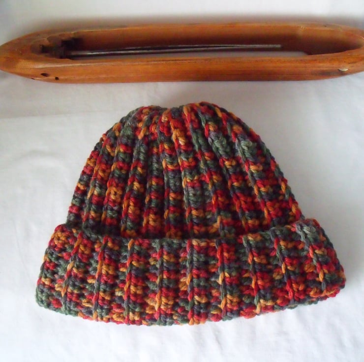 I wanted to make a hat for those of you who don't like wearing bright colours, this is a unisex chunky beanie in lovely rich warm earthy tones.