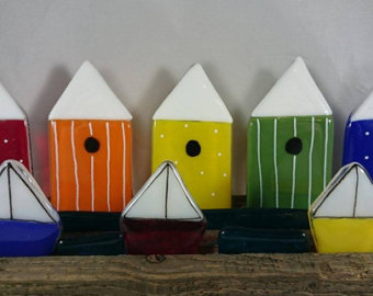 Fused Glass Beach Hut Scene