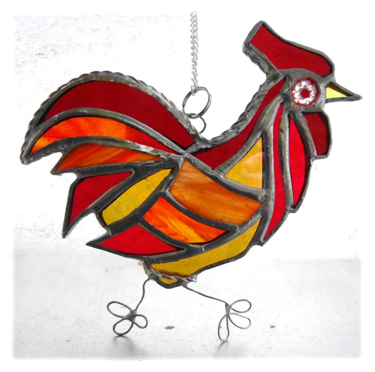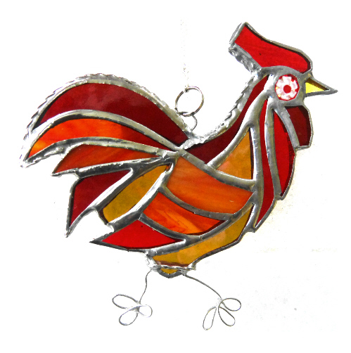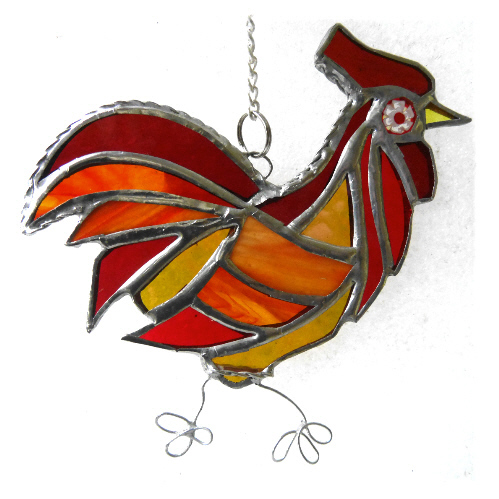 This is a stained glass suncatcher made using the Tiffany copper foil technique.