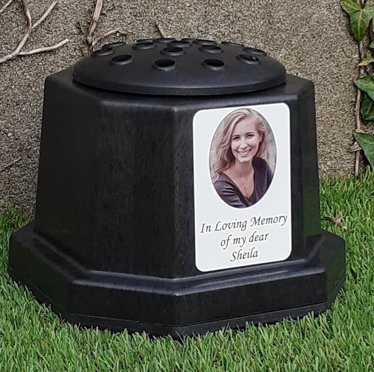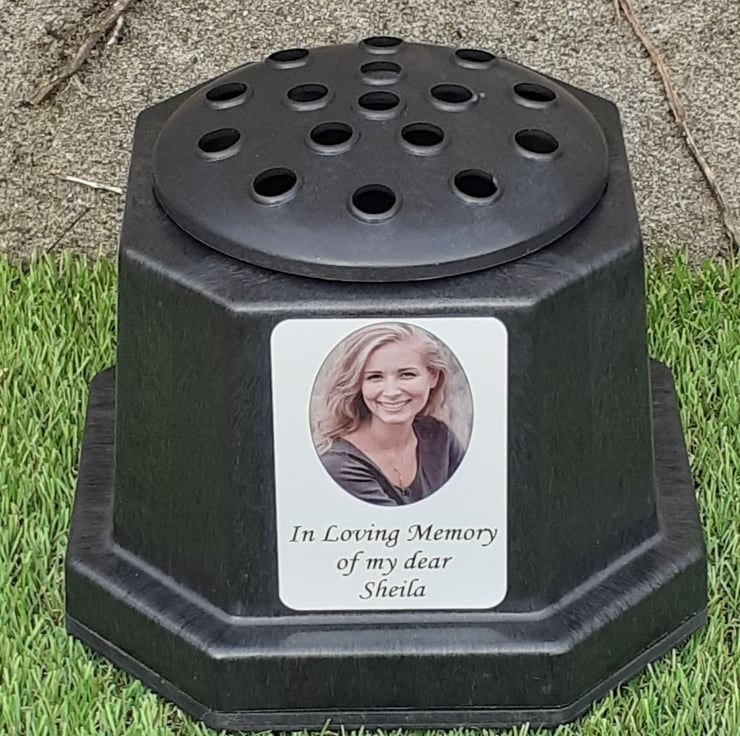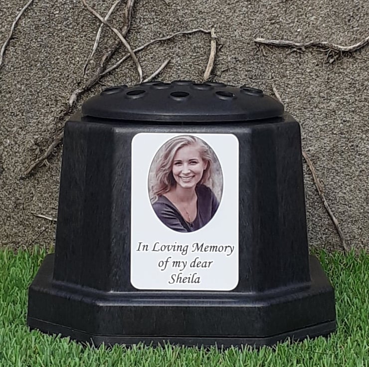 Black Grave Vase/Rosebowl with full colour/Black and white photo